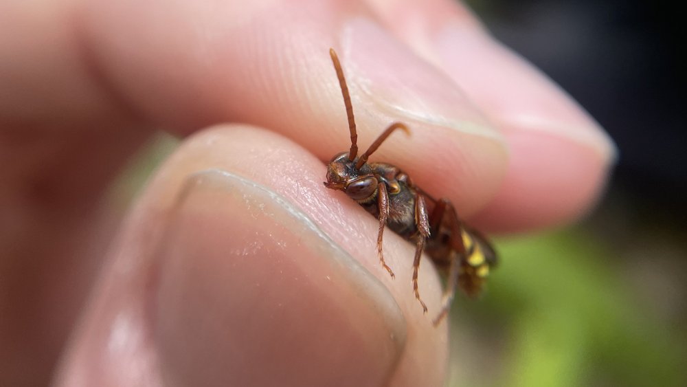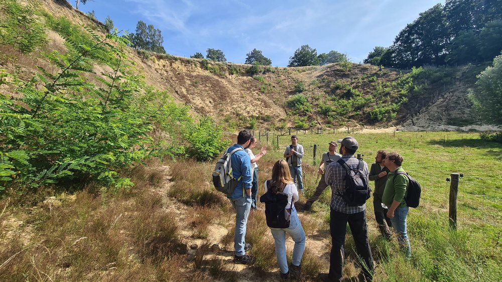 L'équipe s'initie au suivi des abeilles sabulicoles à la Carrière Hannotelet en vue des futures campagnes de monitoring des milieux sableux.