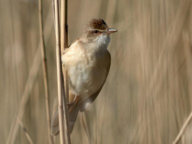 La Rousserolle turdoïde (Acrocephalus arundinaceus) est la plus grande des fauvettes paludicoles en Wallonie, identifiable par son dos brun uniforme, son ventre beige roussâtre, sa gorge blanche, et un sourcil beige pâle qui traverse l'œil. Elle est principalement associée aux roselières à phragmites inondées, préférant les zones avec une végétation dense et quelques buissons épars. Son déclin est principalement dû à la dégradation de son habitat et à la diminution des ressources alimentaires.