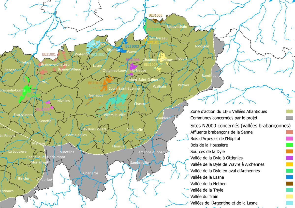 Cette zone de travail couvre une superficie de 151 770 hectares, dont 5 866,86 hectares sont intégrés dans le réseau Natura 2000, répartis sur un total de 12 sites. Dans les vallées brabançonnes, Natagora possède la maîtrise foncière de 116,54 ha de réserves naturelles.