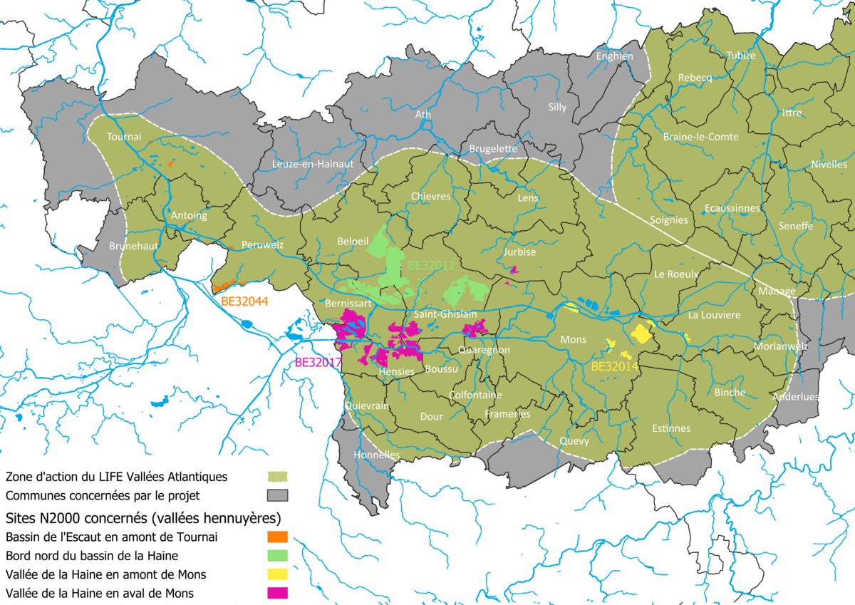 Cette zone de travail s'étend sur une superficie totale de 118 323 hectares, dont 4 680,87 hectares sont inscrits dans le réseau Natura 2000, répartis sur quatre sites principaux : le bord nord du bassin de la Haine (BE32012), la vallée de la Haine en amont de Mons (BE32014), la vallée de la Haine en aval de Mons (BE32017), et le bassin de l'Escaut en amont de Tournai (BE32044).